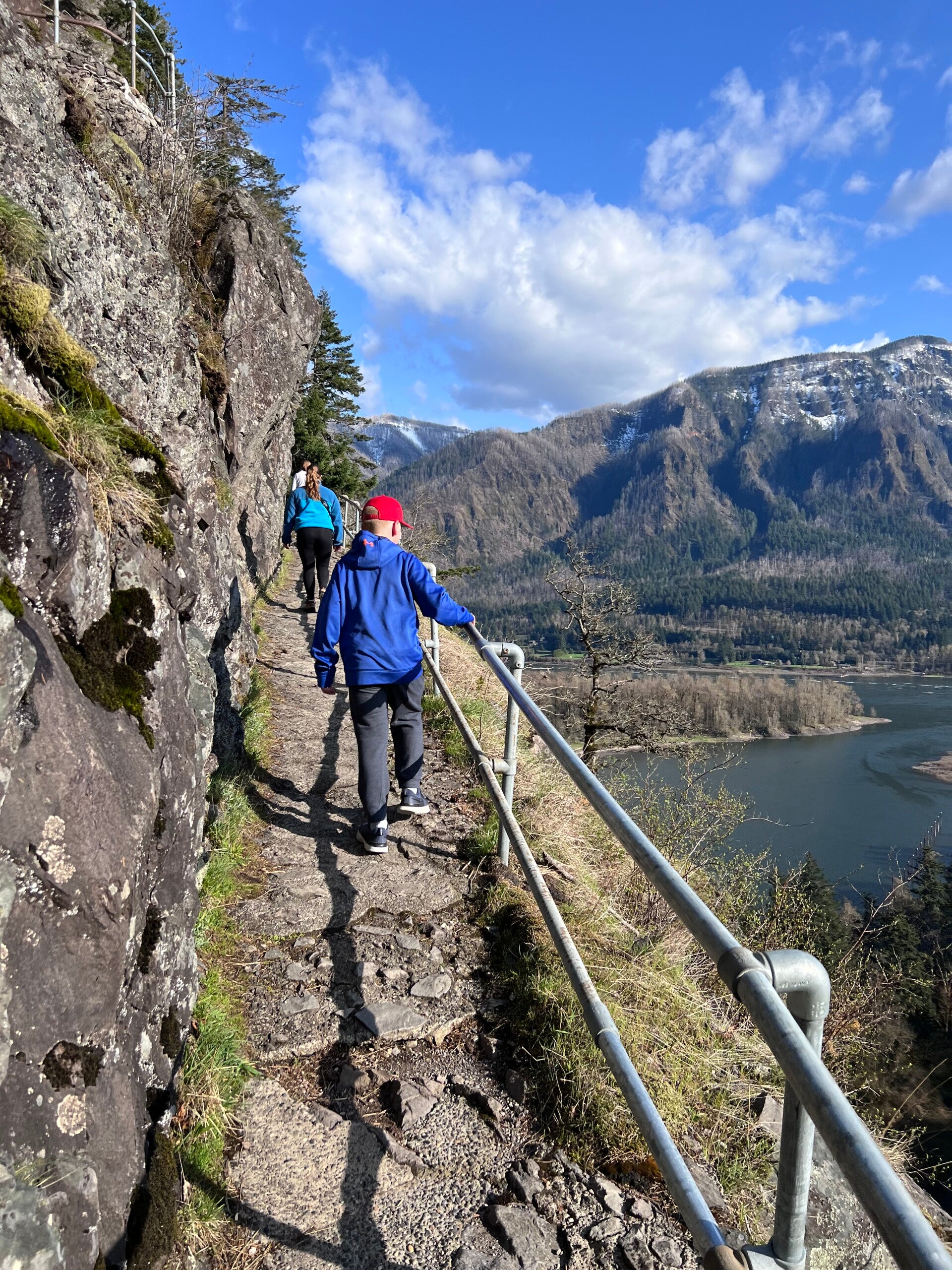 Après toute ses retrouvailles, Skyler, Hobbs, Hayley et moi sommes partis faire une randonnée de environ 1h au Beacon Rock qui se trouve dans l'état de Washington. La vue était super belle et il faisait beau !