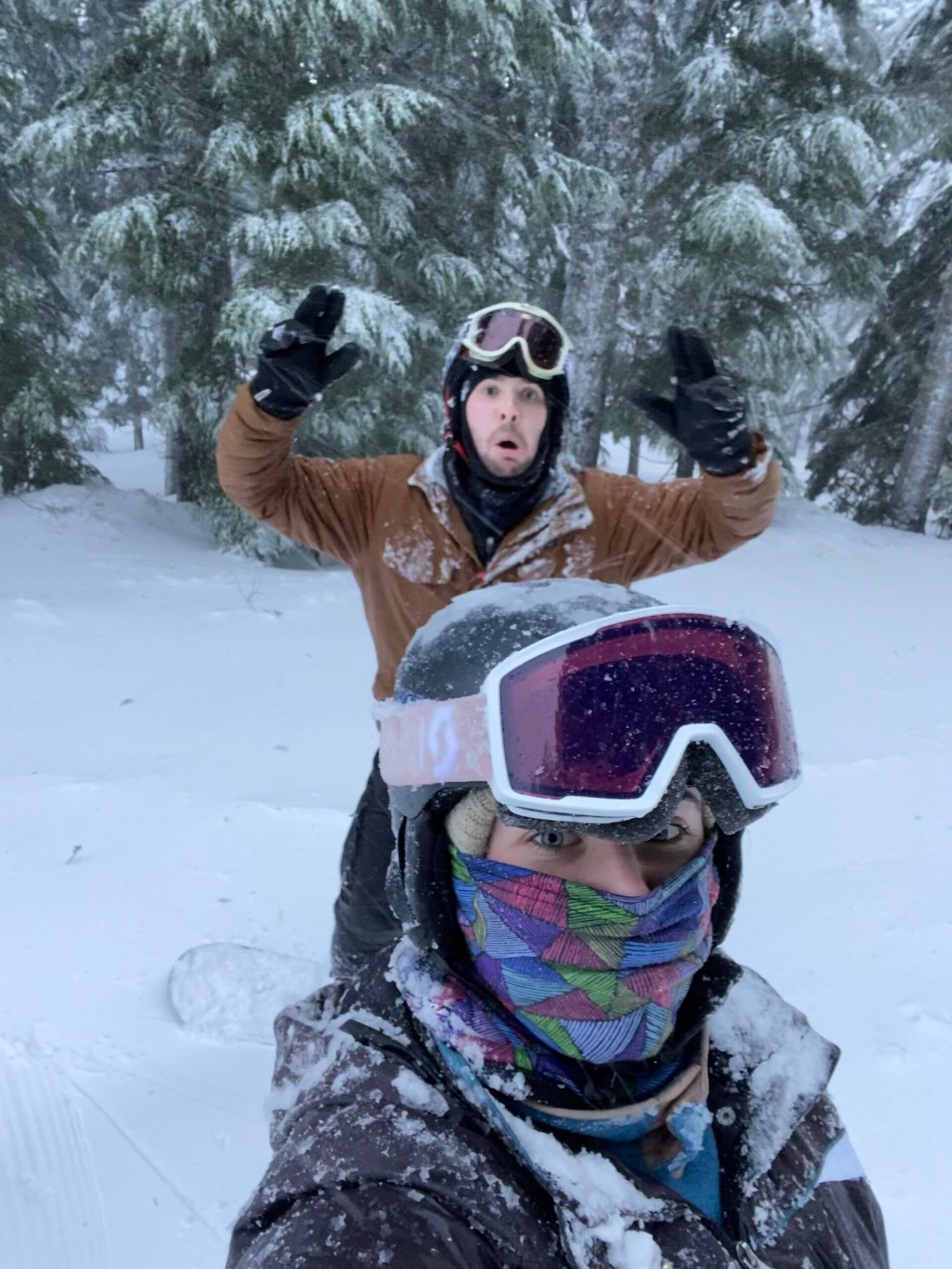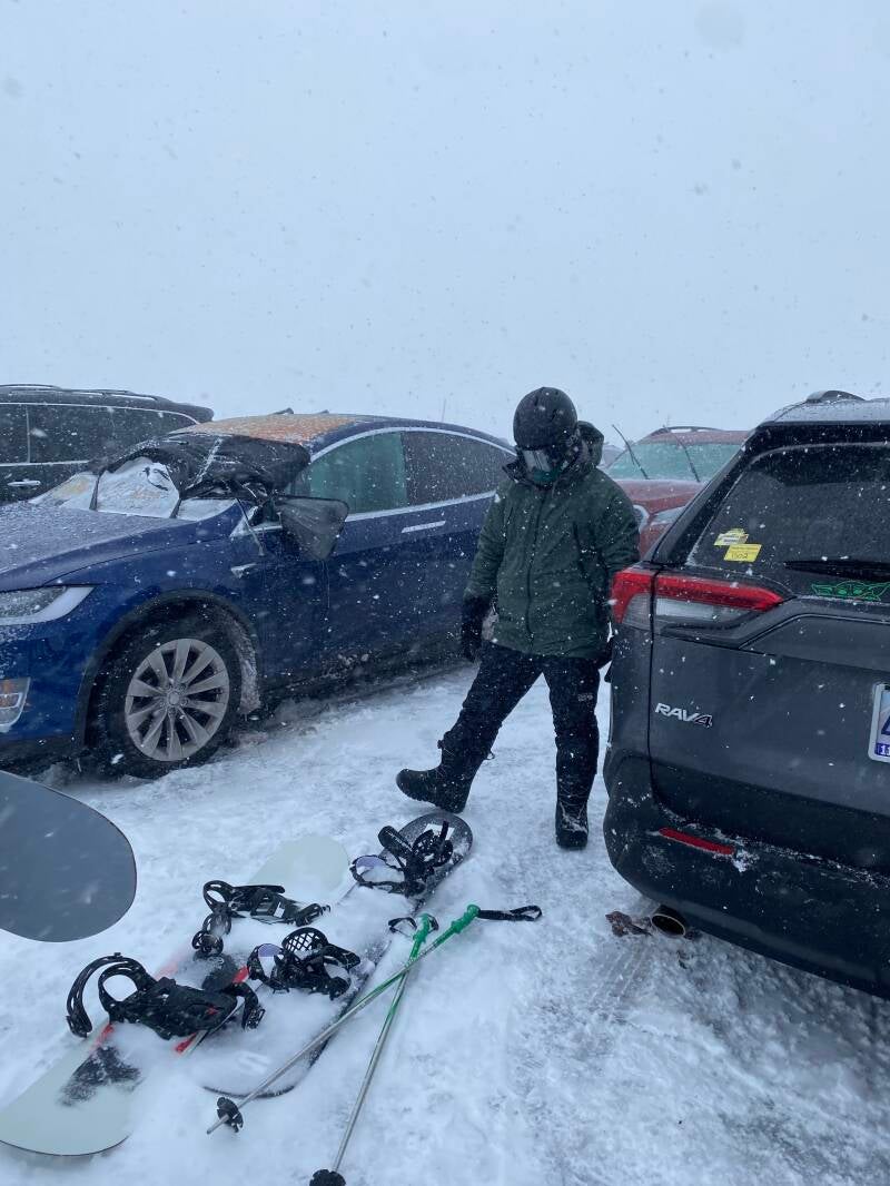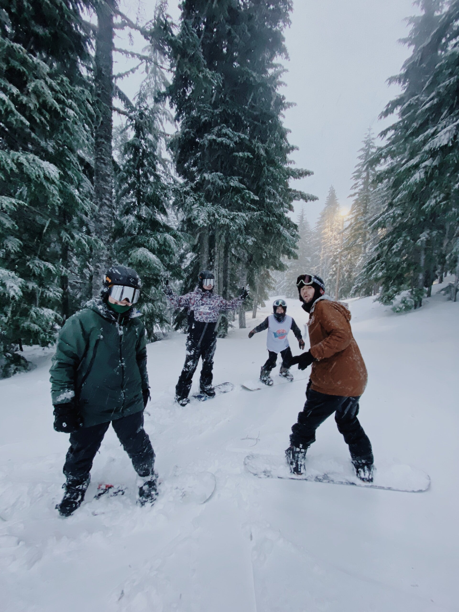 Après un arrêt au Subway, nous voilà arrivé au top du Mt Hood, prêt à aller skier ; on avait passé énormément de temps à se préparer car il y avait une tempête de neige (-5°) et on ne voyait rien... Donc hop on va à l'accueil pour acheter nos tickets (car la veille on a eu une coupure de courant donc impossible d'acheter les tickets en ligne !), et là la dame nous dit qu'ils viennent tout juste de fermer les pistes à cause des conditions météorologiques ! Voilà le moment où mes 4 gardes du corps on commencé à s'énerver. Heureusement qu'il y avait 2 autres stations de ski un peu plus bas. Don on refait 20min de route afin d'arriver à la station un peu plus bas qui cette fois était ouverte ! Mais vient le problème n°2 : on se rend compte que Ben à prit la mauvaise planche de snow... A la station plus haut il a échanger la sienne avec quelqu'un d'autre... Donc ils sont repartit chercher la planche, et pendant ce temps moi, et 2 autres gars nous avons acheté les tickets !