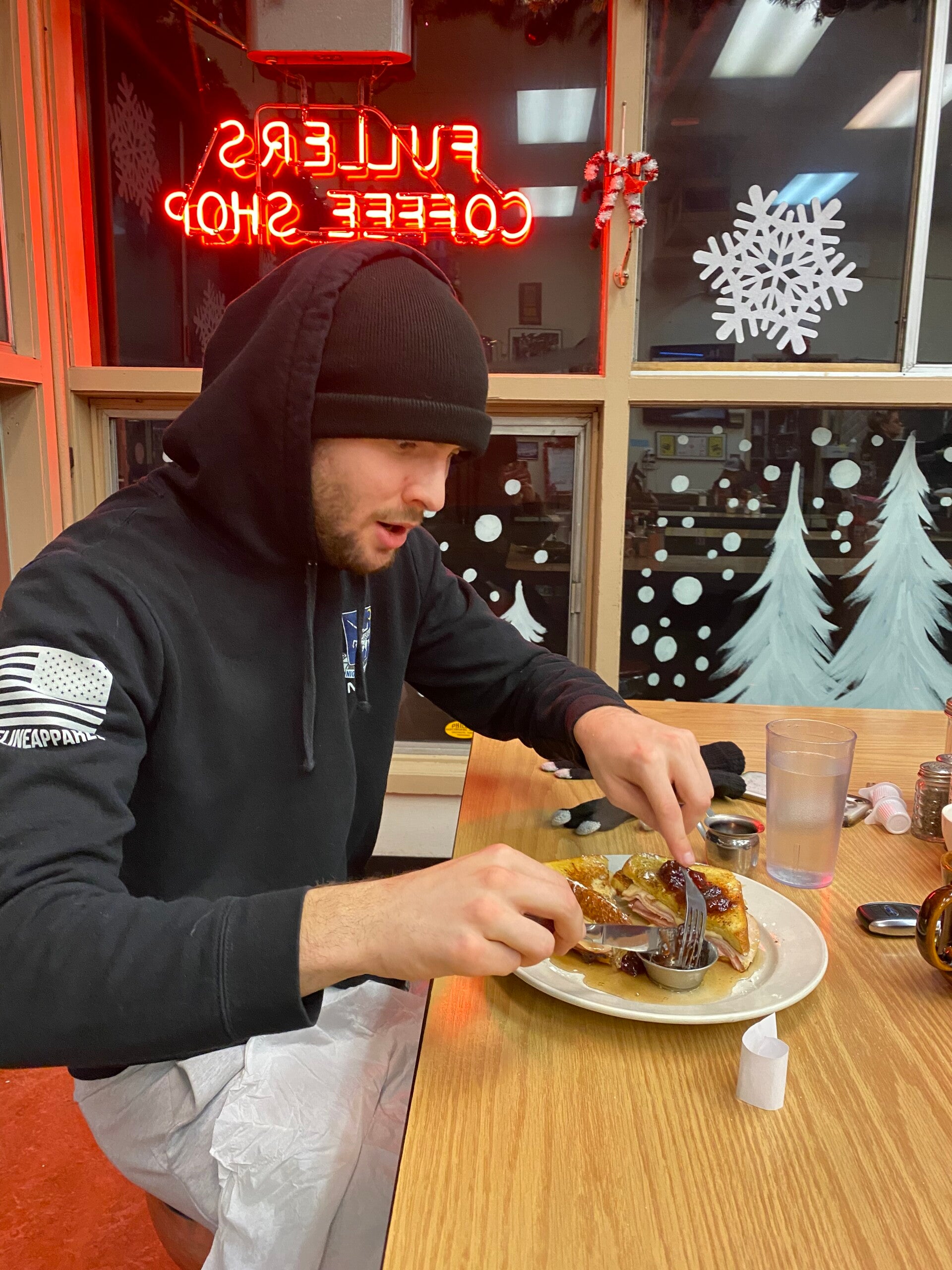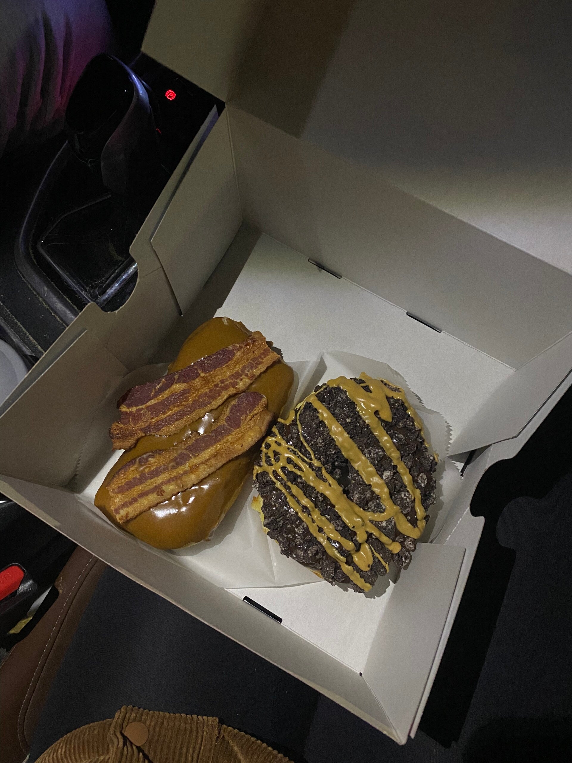 Donc dans la voiture pour aller à Portland, j'ai finit ma nuit, puis après avoir déposer Erica à l'aéroport, on à patienter un peu avant que "Voodoo Doughnuts" ouvre (c'est probablement la place la plus populaire où manger des donuts aux Etats-Unis ! Ben a prit un donuts avec du bacon dessus... oui du bacon (ça m'a choquée). Puis comme Ben avait encore faim (je ne sais pas comment c'est possible après avoir manger un donuts aussi gros que ma main) on est allé dans une place connue où manger des petits déjeuner.