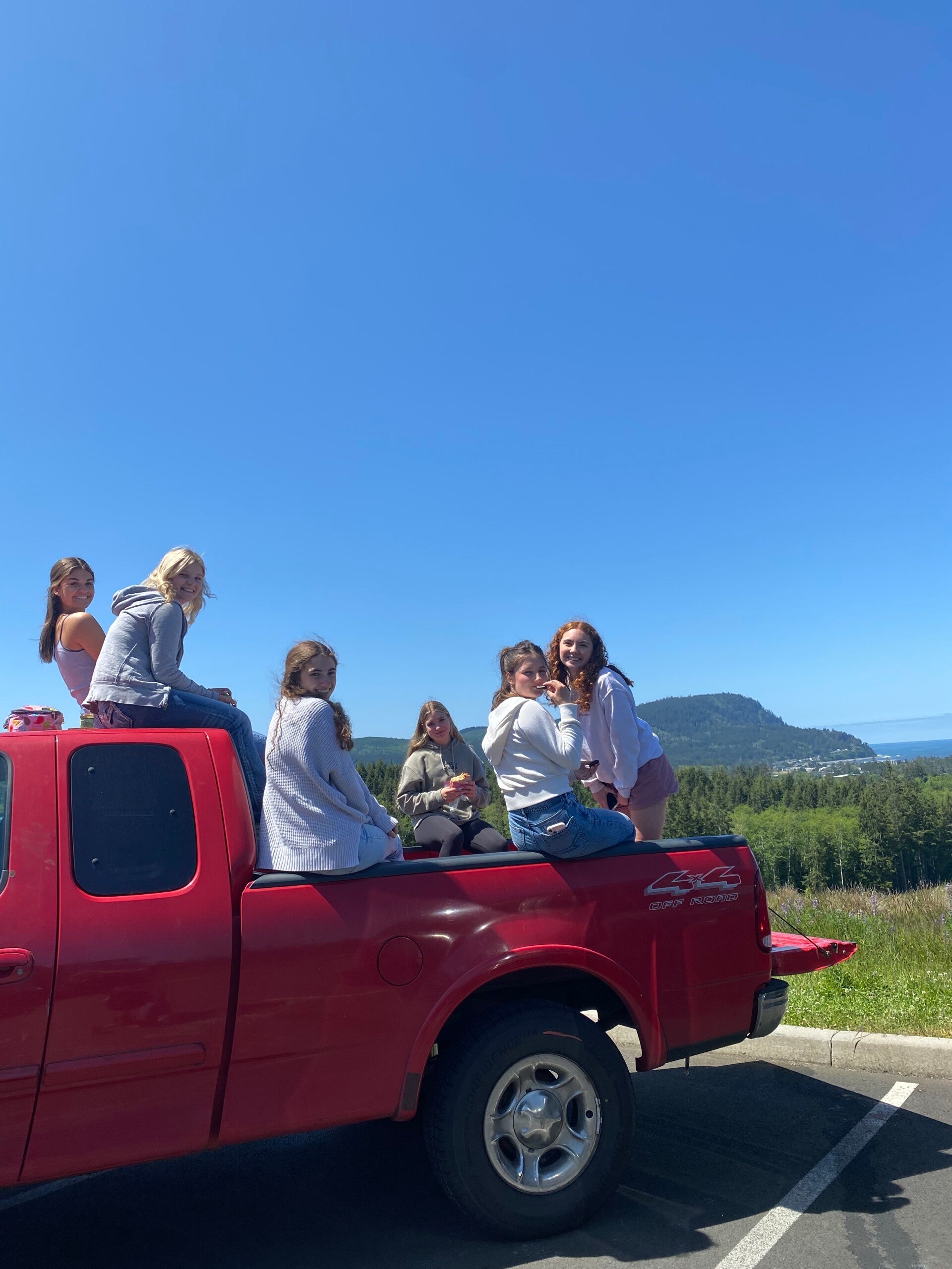 Le midi nous avons mangés comme d'habitude, à l'arrière de la voiture de mes copines avec notre vue sur l'océan...
