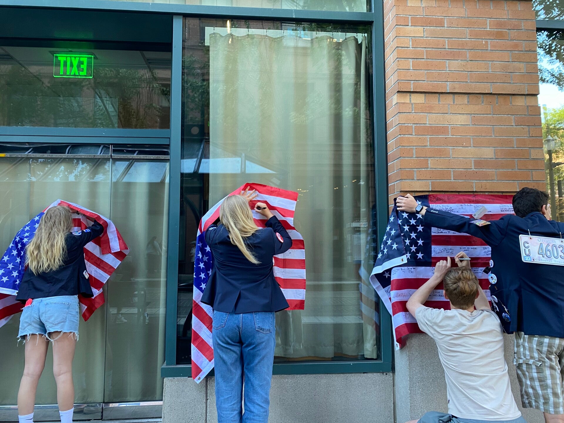 Avant de commencer la parade, comme c'était la dernière fois qu'on se voyait tous ensemble, nous avons signer les drapeau afin de garder un petit souvenir.