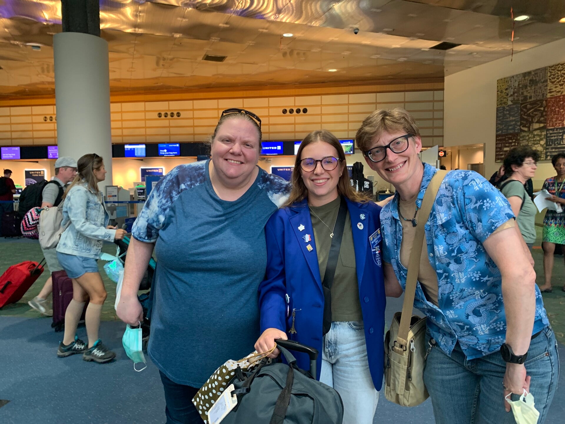 Au moment où l'avion a atterrit à Portland, j'avais mal au ventre et je n'avais pas forcément envie de descendre de l'avion car j'étais stressée. Mais lorsque nous sommes arrivés, nos familles d'accueil nous attendaient et nous ont applaudi. Enfin avec Jules on s'est séparés et sommes partis avec nos familles d'accueil. Il y avait 1h30 de route pour rentrer à Seaside, j'ai beaucoup parlé avec ma famille d'accueil (Cassie et Cyndi), elles sont super gentilles et font beaucoup de blagues, ce qui m'a permis d'être rassurée.
