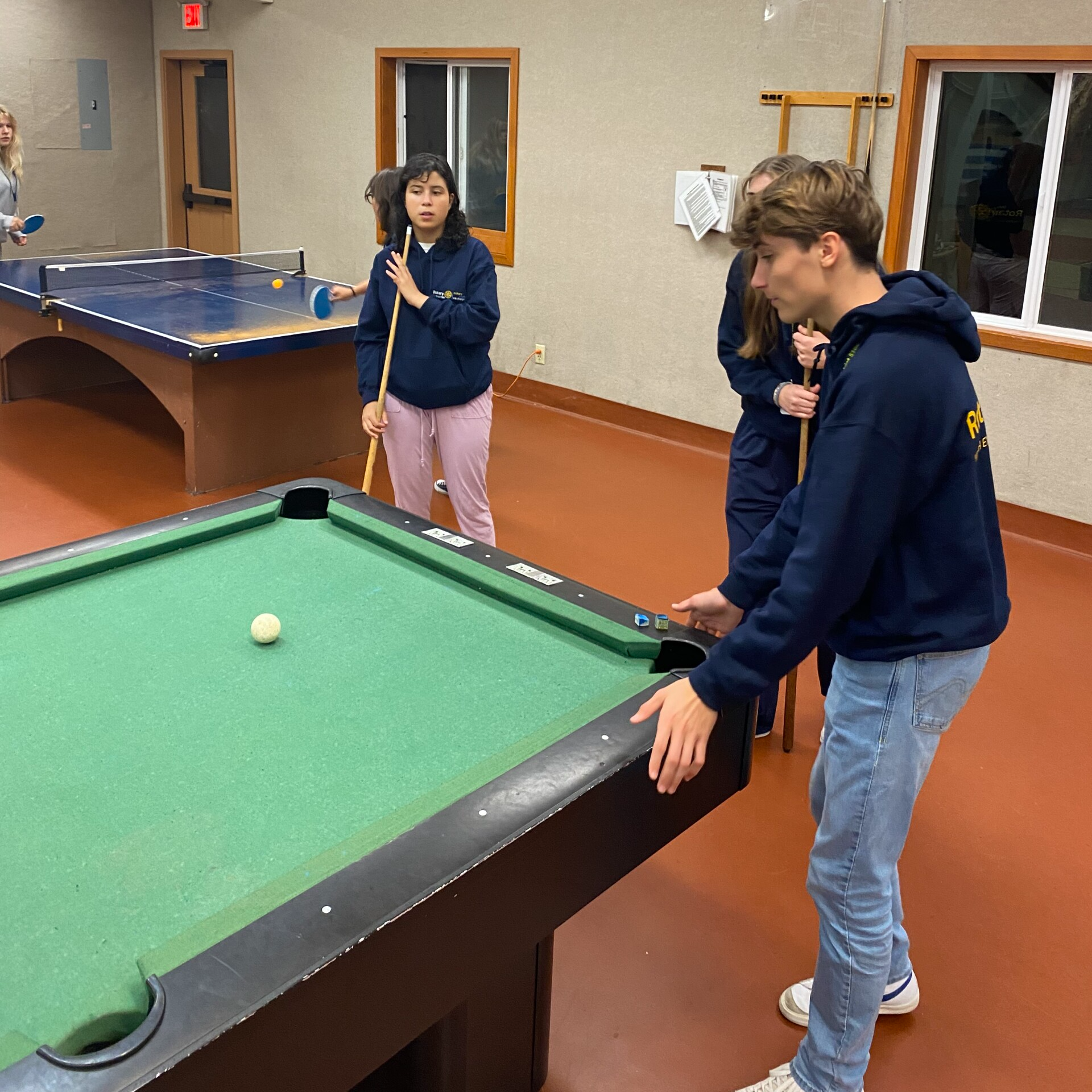 Nous sommes tous arrivés dans l'après-midi, puis nous avons commencé à apprendre à nous connaître en jouant à des jeux (billard, volleyball, basketball...).
